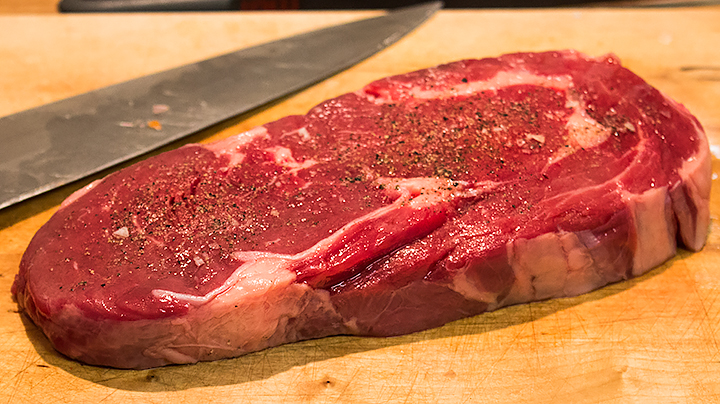 1 rejäl skiva entrecote ( i stället för 2 tunna skivor, steker vi en tjock som vi delar. Saftigare biff på så sätt.)